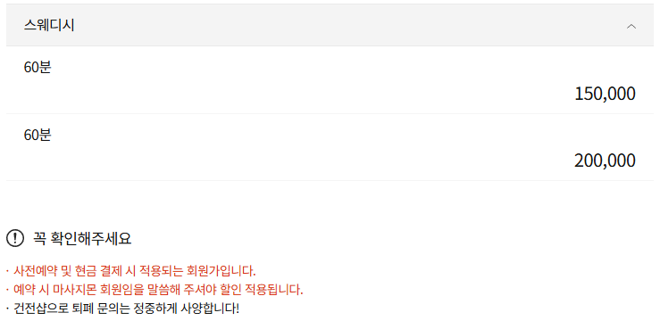 이번엔 스웨디시 60분 코스를 선택했습니다.